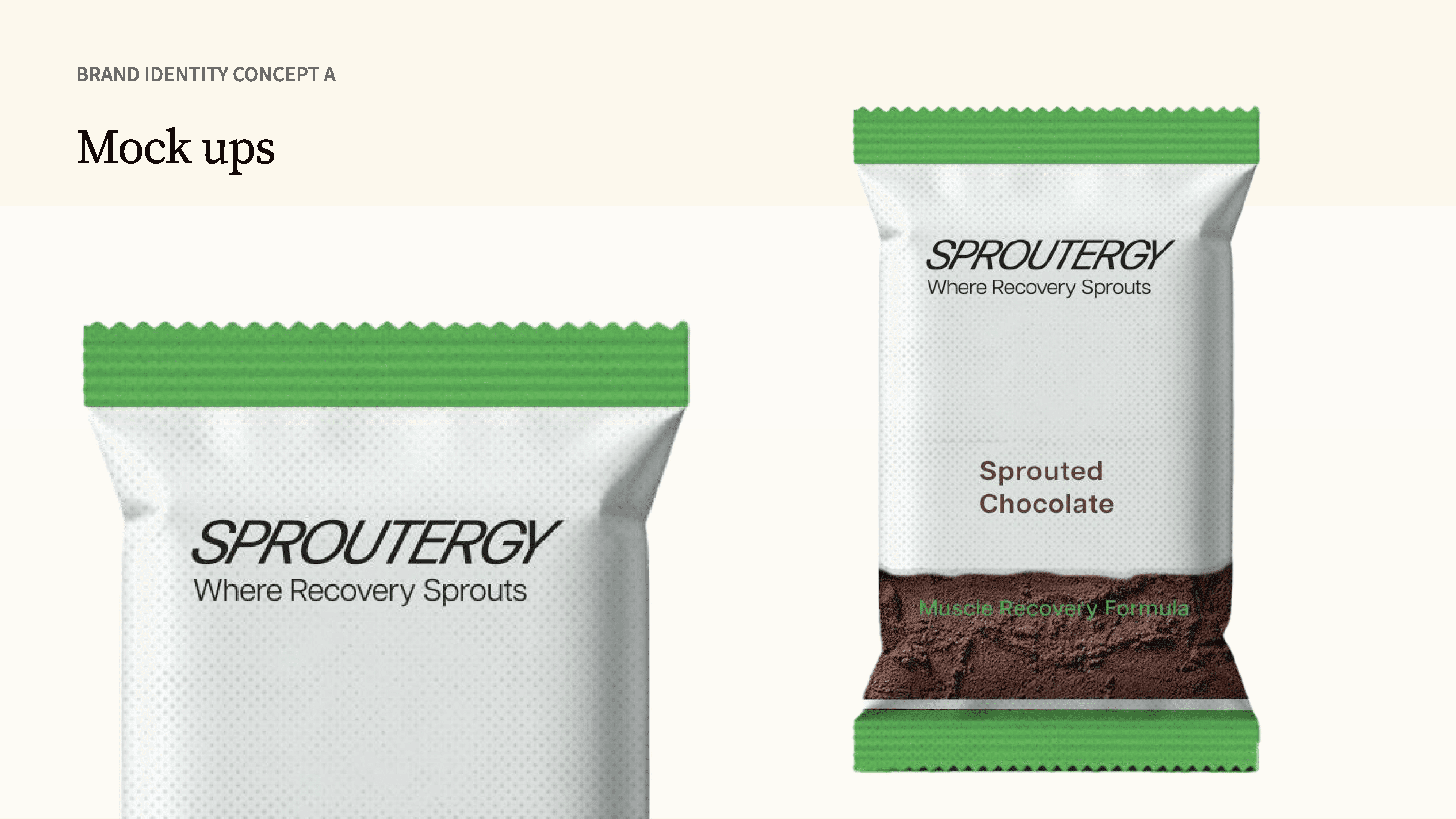 Our team explored two distinct brand identities. My concept focused on the brand's wellness and nutrition focus, emphasizing healing and natural elements, and recovery.