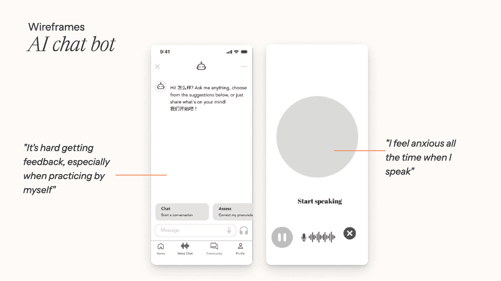 Interviews showed that speaking anxiety and real-time feedback were the most important needs. Focusing on these early helped avoid drifting into unnecessary features.
