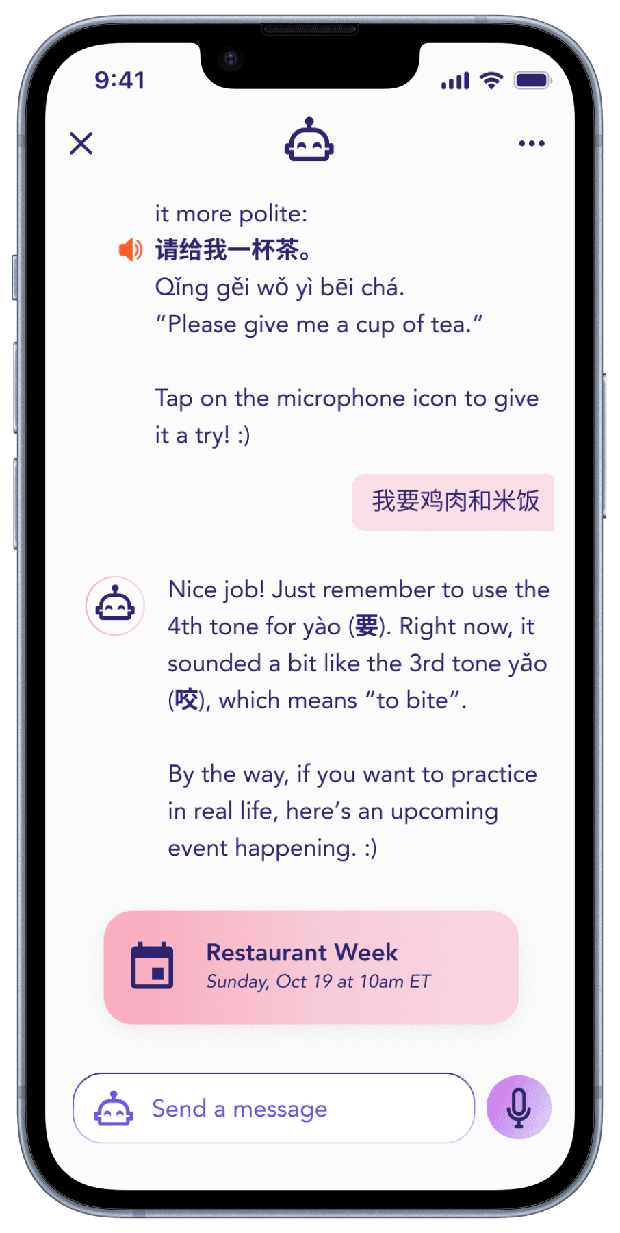 An AI-language learning buddy that gives real-time feedback and connects users to a community of other learners